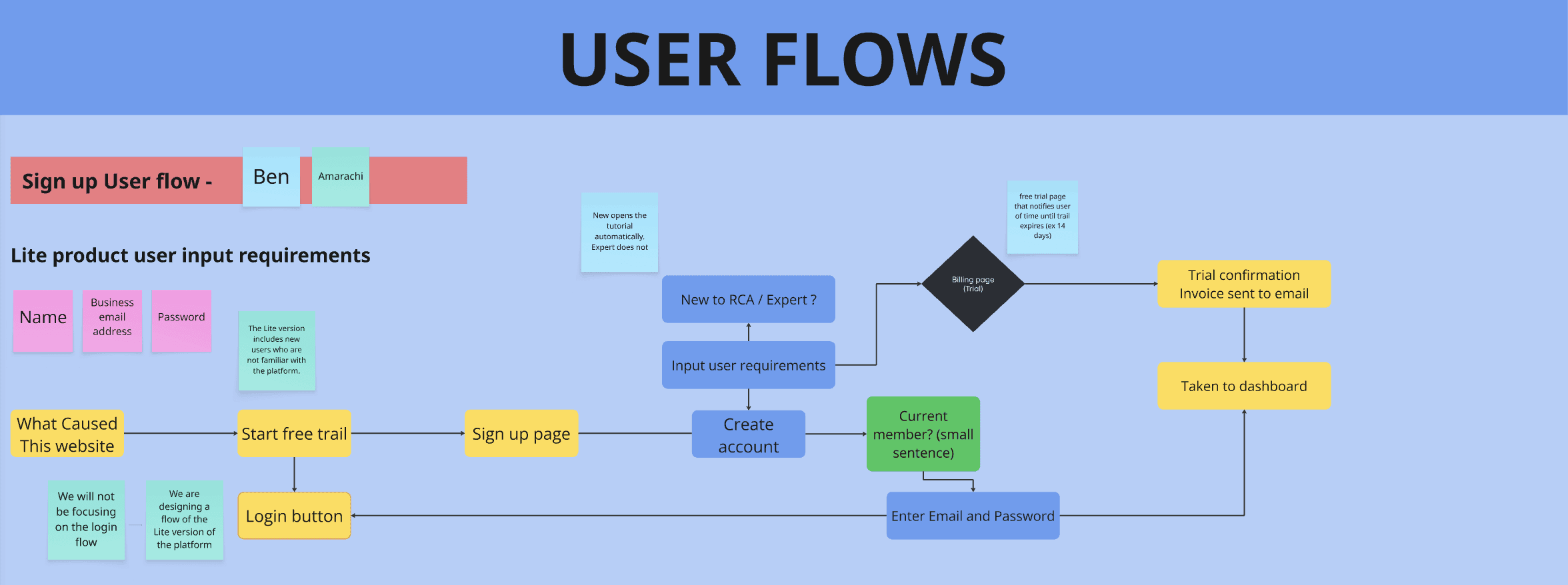 My team and I began our research in this miro board where we created user folows etc.